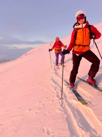Bildtext: Louise och hennes kollegor på topptur på Hamrafjället där de fångade soluppgången innan jobbet. De turade upp i ottan med pannlampa i mörkret och kom upp på fjället lagom till en röd soluppgång. Sedan åkte de ner igen i det varma ljuset.